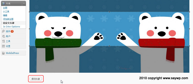 指定裁剪位置后,点击“裁切头部”,OK, ALL DONE。(另外,当指定新图片后,后台是会多出一个恢复到默认图片的选项,我这里就不多说了。)